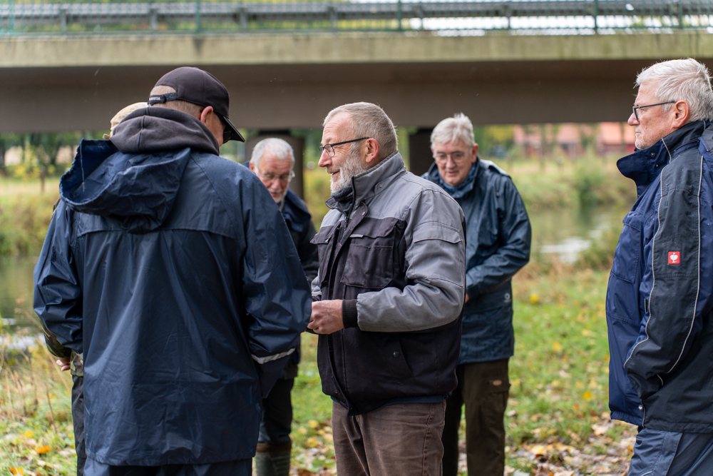 Am 4. Oktober 2025 fand das traditionelle Abfischen an der Ems statt – diesmal mit einer kurzfristigen Planänderung. Eigentlich sollte, wie gewohnt, das Gewässerstück an der Freibadbrücke in Warendorf den Rahmen bilden, doch eine dort eingerichtete Baustelle machte das Fischen an dieser Stelle unmöglich.