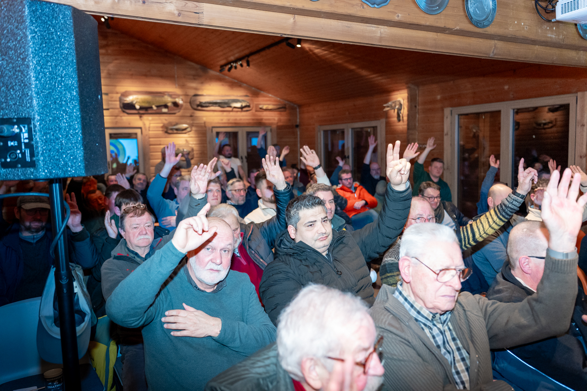 Um 20:02 Uhr des 30. Januar 2026 eröffnete der 1. Vorsitzende die Jahreshauptversammlung im Werner Schwabe-Haus in Sassenberg mit einem „Petri Heil" und begrüßte 76 anwesende Vereinsmitglieder.