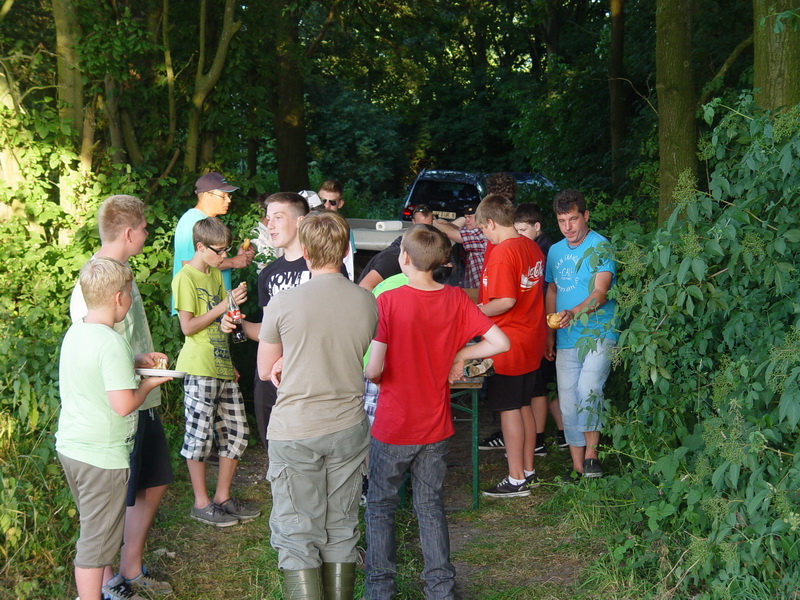 Am 19.07.13 konnte Jugendwart Michael Fölling insgesamt 15 Jugendliche zum Abendangeln der Jugendgruppe am Axtbach begrüßen. Trotz Ferienbeginn waren viele Jugendliche gekommen, um an dem schönen und fischreichen Gewässer in den Abend hinein zu angeln. Erfreulich war, dass auch einige Neumitglieder dabei waren. Um kurz nach neun Uhr kam das Signal von Willi Fölling zum Essen fassen. Es gab kleine Steaks aus der Pfanne mit Brötchen und Krautsalat. Dazu eine kalte Cola. Da ließen sich die Jungangler nicht zweimal Bitten und das Angeln wurde kurzzeitig eingestellt. Mit Anbruch der Dunkelheit war das Abendangeln beendet. Alle Jugendlichen waren sichtlich zufrieden, hatte doch jeder den ein oder anderen Fisch gefangen.