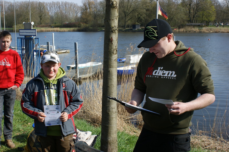 Wie sich zum Abschluss bei der Siegerehrung herausstellte, waren alle Angler erfolgreich gewesen und jeder hatte einige Fische gefangen. Sven Skricek wurde Sieger beim Anangeln der Jugendgruppe. Cedric Guntenhöner und Max Griestop folgten auf den Plätzen 2 und 3. Finn Beelenherm bekam den Sonderpreis für den schwersten Fisch, eine Brasse von 840 Gramm.