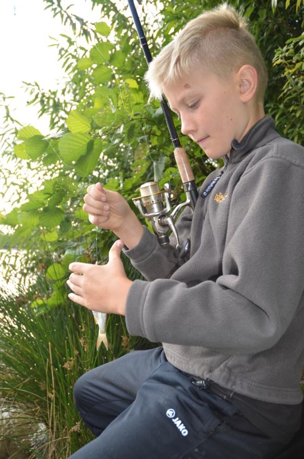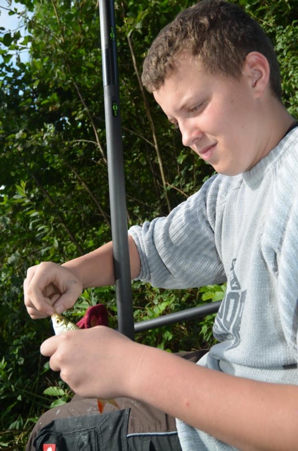 Um 8.30Uhr flogen die ersten Montagen ins Wasser. Zuweilen folgte Biss auf Biss. Die Fische waren in Beißlaune. An diesem Tag gab es keinen Schneider, dafür aber gut gelaunte Jungangler. Mit das aufregendste war der Fang eines Spiegelkarpfens von über vier Pfund. Der glückliche Fänger musste einiges an Geschick aufbringen bis er den Karpfen über den Kescher führen konnte. Gar nicht so einfach an einer leichten Stipprute.