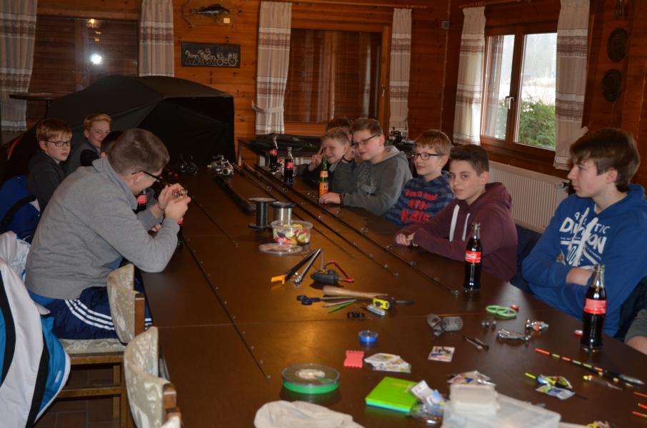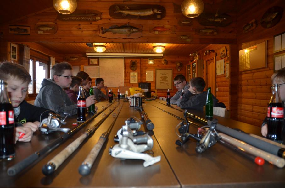 Am 21.02.15 fand die erste Schulung der Jugendgruppe im Werner-Schwabe Haus in Sassenberg statt. Um 14.00 Uhr begrüßte unser Jugendwart Lars Müller die Jungangler und startete mit dem Thema „Gerätekunde“. Unterstütz wurde er vom Sportwart Heiner Alck. Über die Wahl der richtigen Ruten, mit den dazu passenden Rollen, ging es vom wichtigsten Zubehör bis hin zu einzelnen Kleinteilen. Neben den ausführlichen Erklärungen gab es viel zu bestaunen. Das Anglerheim hatte sich in ein kleines Angelparadies verwandelt. Das praxisbezogene Lernen kam so gut an, dass die eingeplante Pause einfach ausfiel. Für genug Energie sorgten Getränke und ein paar Süßigkeiten.