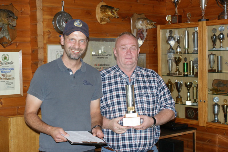 Zum diesjährigen Abangeln konnte unser erster Vorsitzender Klaus-Peter Kranke trotz guter Wetterbedingungen leider nur insgesamt 20 Mitglieder begrüßen. Der Fang von Fischen blieb sogar nur 8 Petrijüngern vergönnt. Geangelt wurde an der Ems Höhe Freibad. Alle anderen mussten als „Schneider“ den Heimweg antreten. Rund ein duzend der Teilnehmer trafen sich anschließend zur „Manöverkritik“ und Heißwürstchen im Vereinsheim in Sassenberg. Das größte Glück hat an diesem Tag Werner Kettler, der nicht nur die meisten Fische, sondern auch den größten Fisch – ein Rotauge von 545 Gramm – fangen konnte. Abschließend bedankte sich der 2. Vorsitzende Mark Wisniewski für die Teilnahme am Gemeinschaftsfischen und lud alle noch Anwesenden zum Raubfischangeln am