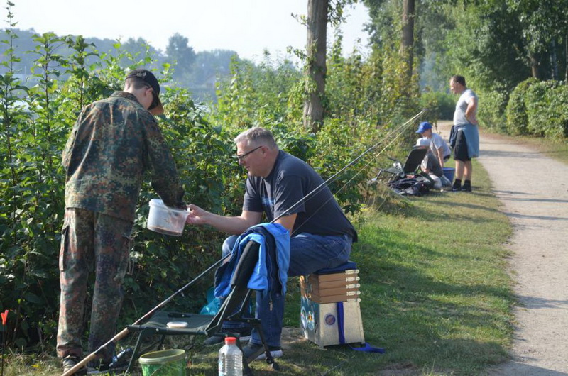 Überpünktlich trafen die Jungs aus Einen an unserem Vereinsheim in Sassenberg ein. Es sollte im Feldmarksee geangelt werden. Fünf Jugendliche, begleitet von drei Betreuern, waren unsere Gäste. Da wir (Willi, Jens, Alex und ich) drei Jungangler mehr im Team hatten, entschied das Los, wer von uns für dieses Angeln nach Einen "überlaufen" sollte. So war es halbwegs ausgeglichen, obwohl wir immer noch mit einer Person im Plus waren. Das Angeln selber lief eher schleppend an. Nur zwei Jungs aus Einen fingen von Anfang an. Bei allen anderen ließen sich die Fische etwas mehr Zeit. Auch wenn es an diesem Tag leider keine großen Fische zu fangen gab, konnte doch wenigstens jeder etwas fangen. In der Summe mußte sich Warendorf dann nach fast vier Stunden geschlagen geben. Die Gruppe aus Einen hat trotz einer Person weniger fast doppelt so viel gefangen. Ein eindeutiges Ergebnis. So blieb der von Einen gespendete Wanderpokal auch gleich bei unseren Gästen. Ebenfalls gingen die Pokale für die erfolgreichsten Jungangler verdient nach Einen. Wir namen es sportlich und freuen uns schon auf die Revanche im nächsten Jahr.