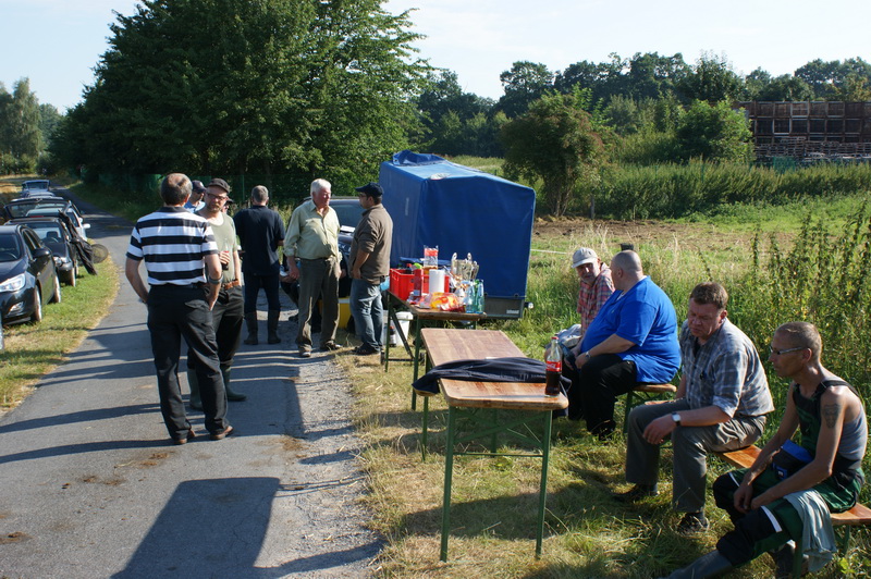 Dass es im Axtbach große Fische gibt, ist bei den Insidern schon lange kein Geheimnis mehr. Umso mehr konnten sich zwei Vereinsmitglieder beim jüngsten Hegefischen am Axtbach über Aale von fast drei Pfund freuen. „Flussschlangen“ von der Größe sind jedoch in der Tat eher die Seltenheit geworden. Aber der Reihe nach. Insgesamt 18 Petrijünger trafen sich am Samstagabend, um das diesjährige Nacht- und Aalangeln am Axtbach zu bestreiten. Gefischt wurde von 20.10 Uhr bis zum nächsten Morgen um 07.10 Uhr Höhe Klärwerk bis zur Fleischerbrücke. Durch die lange Trockenheit betrug der Wasserstand an einigen Stellen unter einem halben Meter, was den Fischfang nicht gerade einfacher machte. Zudem war die Nacht für diese Jahreszeit unangenehm kühl und feucht. Dafür wurde es am nächsten Morgen umso schneller warm und auch innerlich sorgte die von Horst Junker zubereitete Bratwurst für ein sättigendes Gefühl. Anschließend hatte Andreas Körner gleich dreifach Grund zum Jubeln. Nicht nur, dass er an dem Abend den größten Aal und somit den größten Fisch überhaupt gefangen hatte, er konnte auch die Friedfischwertung für sich entscheiden und darf sich somit gleich in zwei Wanderpokalen verewigen. Gegen zehn Uhr beendete Klaus-Peter Kranke das diesjährige Hegefischen am Axtbach und wünschte allen Teilnehmern noch einen erholsamen Sonntag.