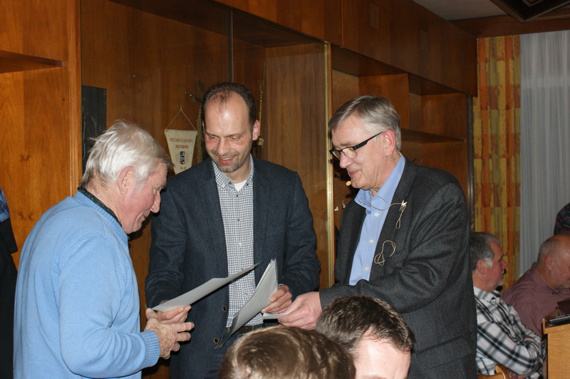 Rund 120 Mitglieder konnte der 1. Vorsitzende Klaus-Peter Kranke zur diesjährigen Jahreshauptversammlung im Emshof begrüßen. Beide Säle waren gut gefüllt. Nach der Begrüßung wurde das Protokoll der letztjährigen Versammlung durch den 2. Vorsitzenden Mark Wisniewski verlesen. Gegen Form und Inhalt des Protokolls gab es keine Einwände aus der Versammlung. Anschließend verlas Kassenwart Martin Gösling den Kassenbericht des abgelaufenen Jahres 2016. Kassenprüfer Andreas Körner berichtete kurz von der Prüfung der Kasse und bat die Versammlung um Entlastung der Kassenwarte. Diese wurde einstimmig erteilt. Zum neuen Kassenprüfer wurde Thomas Stöwe gewählt. Im Anschluss konnten 17 Neumitglieder ihre Vereinspapiere in Empfang nehmen. Der Verein hat somit aktuell 729 Mitglieder. Der 1. Vorsitzende berichtete unter dem Punkt „Anträge und Mitteilungen" über einen Antrag zur Einführung eines Zwischenmaßes, der nach eingehender Beratung mit dem Antragssteller jedoch wieder zurückgezogen wurde. Der Preis für die Kanalkarte musste aufgrund erhöhter Pachtgebühren des Verbandes auf 26 € erhöht werden. Es stehen jedoch wie jedes Jahr wieder ausreichend Kanalkarten zur Verfügung. Danach übernahm Ehrenratsmitglied Klaus-Dieter Hoffmann die Entlastung des Vorstandes. Die Versammlung erteilte dem Vorstand für dessen Arbeit einstimmige Entlastung. Fast alle Positionen des Vorstandes mussten in diesem Jahr neu gewählt werden. Zunächst wurde Klaus-Peter Kranke als 1. Vorsitzender in seinem Amt bestätigt. Auf Antrag aus der Versammlung wurde alle anderen Vorstandsposten en Block gewählt. Alle Vorstandsmitglieder, die zur Wahl standen, wurden durch die Versammlung ebenfalls einstimmig in ihrem Amt bestätigt. Einzig die Wahl des Schriftführers wurde auf das nächste Jahr verschoben, da noch kein geeigneter Kandidat gefunden wurde. Wer also Interesse an der Vorstandsarbeit und insbesondere als Schriftführer hat, möge sich beim 1. Vorsitzenden melden. Lars Müller wurde als Jugendleiter und Alexander Hagenhoff als neuer 2. Jugendleiter durch die Versammlung bestätigt. Beide wurden schon zuvor auf der Jahreshauptversammlung der Jugendgruppe einstimmig gewählt. In den Ehrenrat wurde als neuer Beisitzer Erich Lillteicher gewählt. Neuer 2. Vorsitzender des Ehrenrates ist Klaus-Dieter Hoffmann. Anschließend berichteten Jugendleiter Lars Müller und Gewässerwart Theo Schlegel von Aktionen aus dem Jahr 2016 und gaben einen Ausblick auf das Jahr 2017. Der 1. Vorsitzende ging in seinem Jahresbericht eingehend auf die Veränderungen am See Butterpatt und Gröblinger See ein. Im Anschluss konnte Klaus-Peter die Auszeichnungen für die schwersten, im Jahr 2016 gefangenen Fische übergeben. Für 50 Jahre Mitgliedschaft im Kreisfischereiverein Warendorf/Ems wurden Klemens Heitmann und Franz-Josef Peter geehrt. Zudem wurden zahlreiche Mitglieder für 40- bzw. 25-jährige Mitgliedschaft geehrt. Weiter berichtet Klaus-Peter, dass der Vorbereitungskurs zur Fischerprüfung von Andreas Körner und Mark Wisniewski, mit Unterstützung von Tilla Sparenberg und Hans Hülsen erfolgreich durchgeführt wurde. Von 64 Prüflingen gab es nur einen Teilnehmer, der die Prüfung nicht schaffte.