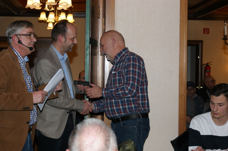 Im Anschluss an die Pokalvergabe für außergewöhnliche Fänge 2019 wurden Mitglieder für ihre langjährige Treue zum Verein geehrt. Wobei besonders zu erwähnen ist, dass Wilfried Lindemann nun 65 Jahre und Dieter Kurzay 60 Jahre unserem Verein angehören. Darüber hinaus wurden Erich Frankrone für 30 Jahre Vorstandsarbeit und Martin Gössling für 20 Jahre Vorstandsarbeit jeweils ein kleines Präsent als „Dankeschön" überreicht.