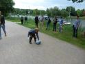 Zum Angeln selber: Die ganze Woche vor dem Nachtangeln war perfektes Wetter für das Angeln im Emssee. Wir als Betreuer waren überzeugt, dass richtig gut gefangen wird. Dummerweise drehte abends der Wind auf Ost und uns beschlich ein ungutes Gefühl. Und wir sollten damit leider Recht behalten. Es wurde schlecht gefangen, wenn überhaupt. Unsere Gesamtausbeute bei acht Junganglern und drei Betreuern waren gerade mal zwei Hechte (57cm und 62cm) und ein Aal (61cm). Immerhin ein Aal! Dank Vincent konnten wir dem Namen der Veranstaltung wenigstens gerecht werden. Trotz der Beißflaute hatten wir alle wieder viel Spaß zusammen. Nachts am See bleibt halt doch immer etwas besonderes. Zum Abschluss konnten wir noch unter allen Teilnehmern eine gespendete Abhakmatte verlosen. Danke dafür an Michael!