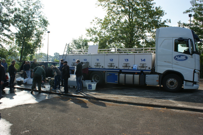 Pünktlich um 09:00 Uhr war der LKW auf dem Gelände vom Landesfischereiverband Westfalen und Lippe e.V. in Münster. Dort bekam jeder Verein seine Farmaale mit einem Durchschnittsgewicht von 10 Gramm pro Stück.