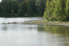 Durch die großzügige Einfassung mit Wildzaun sind die Pflanzen vor Verbiss durch Enten, Gänse und Nutria geschützt. Wenn sich die Anpflanzung ab dem nächsten Frühjahr so entwickelt wie wir uns das Vorstellen haben Jungfische einen zusätzlichen Nahrungsbereich, Versteckmöglichkeiten und Schutz vor Prädatoren.