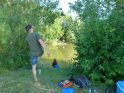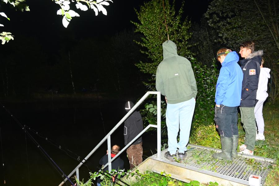 Bei den warmen Temperaturen gab es quasi zur Begrüßung erstmal ein Eis, welches gleichzeitig als Los für die Angelstellen diente. In Zweierteams ging es dann ans Wasser. Da der Teich überschaubar war und zusätzlich einiges an Wasser fehlte, einigten wir uns darauf nur mit einer Rute zu angeln. Allerdings stellten wir den Jungs frei, auf was sie angeln. Somit durften sie ihr Glück auch auf Raubfisch versuchen. Im Teich lockten nämlich neben einigen Karpfen und Schleien auch große Aale und Zander. Also für jeden etwas dabei. Das wir den Jungs eindrücklich gesagt hatten, sie sollten sich besser so ruhig wie möglich an kleinen Gewässern verhalten, war scheinbar schnell wieder vergessen. Zumindest die Alten, also wir als Betreuer, waren uns sicher, es hätte mehr gefangen werden können. Aber bei so einem Event sollte der Spaß im Vordergrund stehen und wir verzichteten auf den erhobenen Zeigefinger. Auch wenn das für uns eine Nacht mit sehr wenig Schlaf bedeutete. Die Raubfische sahen das scheinbar nicht ganz so locker und blieben lieber im Wasser. Lediglich ein Breitkopfaal hatte dann doch etwas zu viel Hunger.