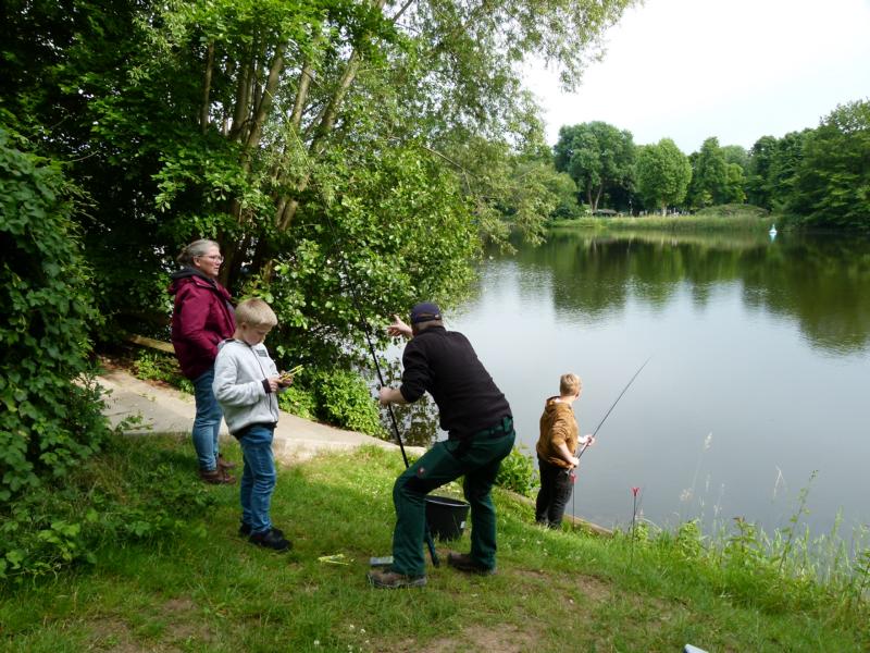 Es war der erste Mittwoch im Juni und es stand das dritte Schnupperangeln in diesem Jahr an. Von 17 Uhr bis 19 Uhr durften Kinder bzw. Jugendliche ohne Fischereischein den Emssee unsicher machen. Natürlich unter der Aufsicht von erfahrenen Anglern. Übrigens dürfen die Eltern oder Erziehungsberechtigten auch gerne mitangeln, soweit Interesse besteht. Denn seit ein paar Jahren dürfen wir auch Erwachsene "betreuen".