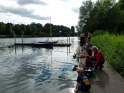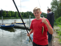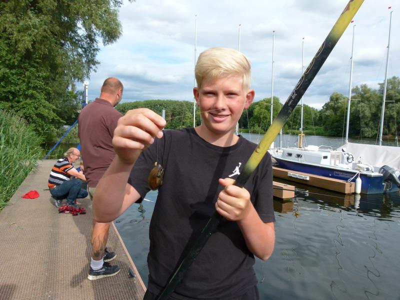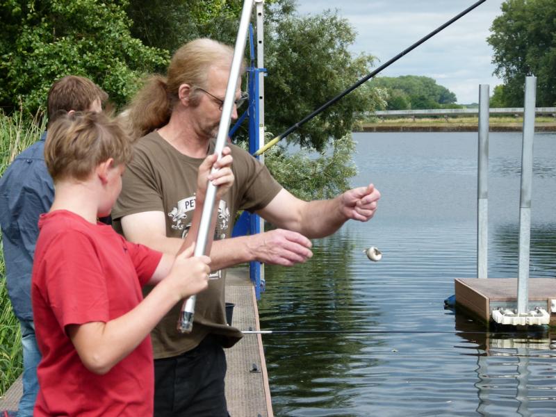 Aufgrund der Sommerferien waren wir uns sicher, dass sich nicht allzu viele Jungangler ans Wasser verirren würden. Viele von ihnen genießen warscheinlich grade ihren Urlaub. Das die Runde dann doch so klein ausfiel überraschte uns ein wenig. Immerhin konnten wir vier Kids und zeitweise drei Eltern fürs Angeln begeistern.