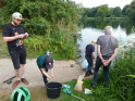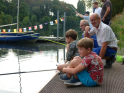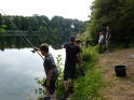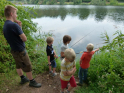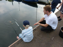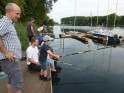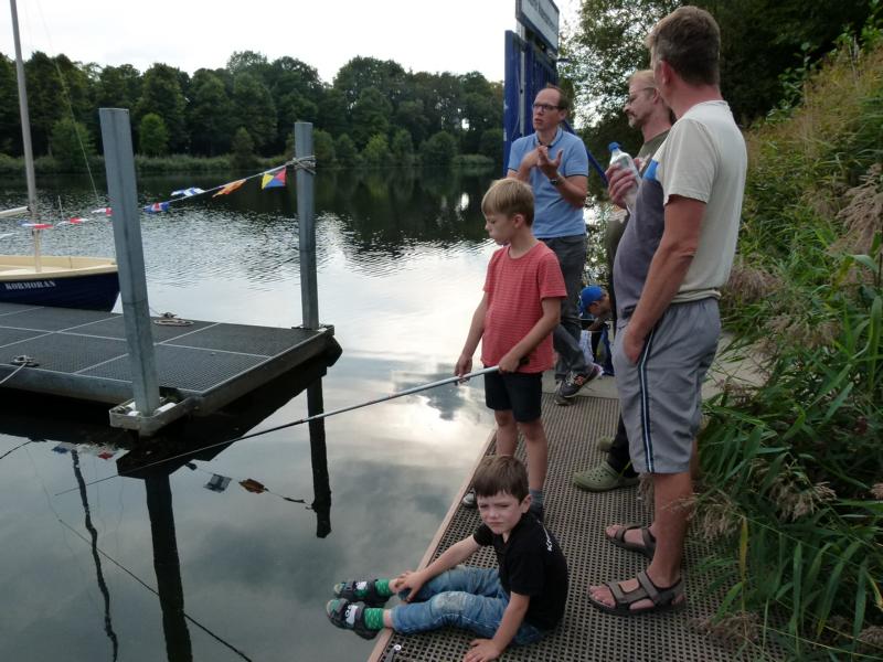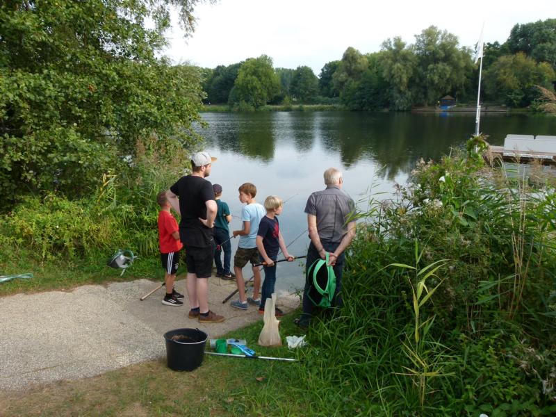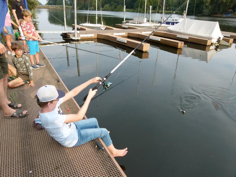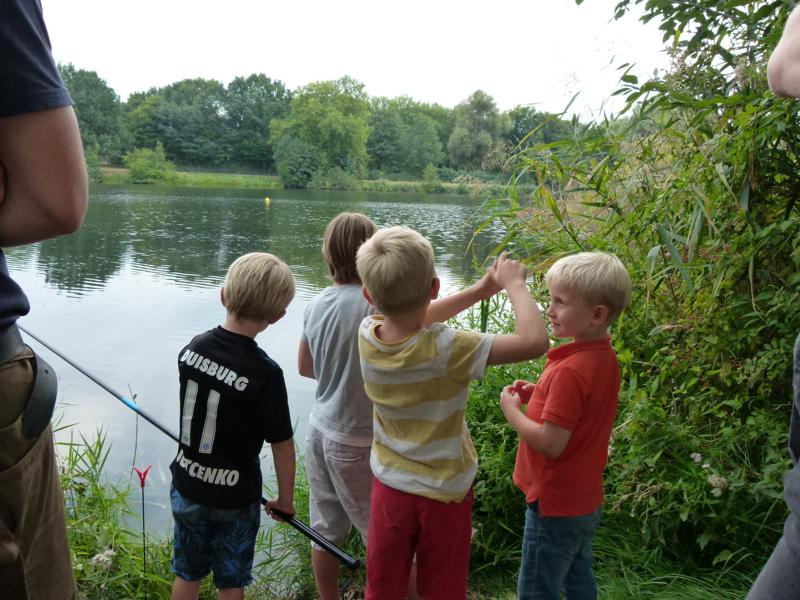 Wo wir gerade beim Angeln sind. Viel schöner hätte wir die Schnupperangelsaison nicht beenden können. Das Wetter war perfekt und die Teilnahme einfach super. 28 Kinder bzw. Jugendliche und die Eltern hatte ich nicht mal mitgezählt. Das waren zwei schöne aber auch anstrengende Stunden für unsere Betreuer. Bei vier Kindern pro Angelstelle kann man schon mal etwas ins Schwitzen kommen. Was die Fische angeht, hätten ruhig etwas mehr beißen können. Aber die Meisten konnten zumindest ein paar Fische fangen. Vorwiegend Rotaugen aber auch Ukeleien und ein paar Barsche. Und über einen hart erarbeiteten Fisch freut man sich einfach noch etwas mehr. Der Emssee war wie beim letzten Mal glasklar, nur dass jetzt deutlich mehr Wasserpflanzen zu sehen waren. Wie in einem riesigen Aquarium konnten wir kleine Rotaugen und einige Barsche beobachten. Einfach spannend. Für klein und groß!