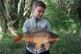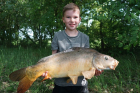 Nach dieser Aufregung ging es dann schneller. Diesmal war es Laurin, der einen Karpfen haken konnte. Nach kurzem spritzigem Drill konnte er einen tollen Schuppenkarpfen präsentieren.