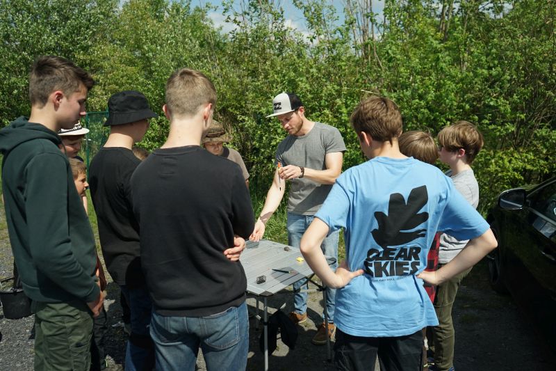 So kam es, dass wir für dieses Jahr das Thema Karpfenangeln noch einmal aufgreifen und eine Schulung dazu geben wollten. Hierzu trafen sich am 14. Mai um 15 Uhr insgesamt zehn lern- und angelwillige Kids, die etwas zum Thema Karpfen wissen wollten.