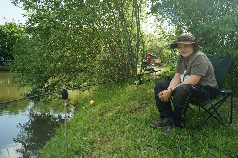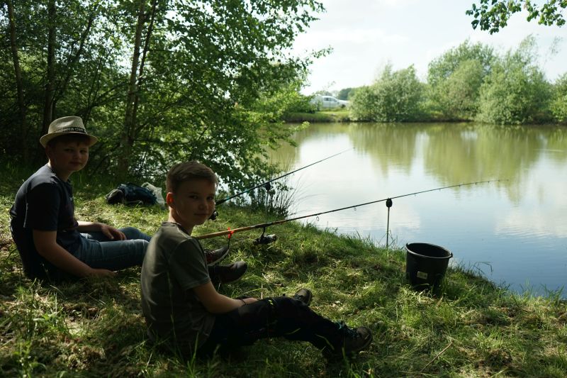 Nach gut 45 Minuten waren wir hiermit durch und es verteilten sich alle um den kleinen idyllischen Teich. Schnell flogen die ersten Posen- und Grundmontagen ins Wasser.