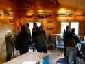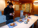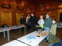 Zum Aufwärmen ging es fast pünktlich ins Vereinsheim, wo Getränke und Plätzchen bereit standen. Auf zwei Tischen waren Angelsachen ausgebreitet. Darunter Ruten, Rollen, Kescher, Taschen, Dreibeine, Bücher und noch einiges mehr. Der Weihnachtsmann hatte es wirklich gut gemeint. Wer im letzten Jahr auch brav geangelt hatte, durfte zuerst an den Gabentisch. Bei gleicher Teilnahme gab es ein Stechen in Form von einem Zielwerfen mit einer kleinen Spinnrute im Heim. Da wir nach der Bescherung noch etwas Zeit hatten, durften alle ihre Wurfkünste vorführen. Zur Motivation lockten ein paar Gutscheine, die in diesem Jahr nicht vergeben wurden. Ein toller und spaßiger Abschluss für unser Angeljahr 2022.