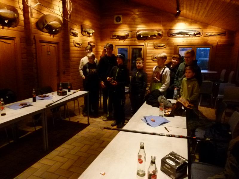 Um dreizehn Uhr durften wir zehn Jugendliche begrüßen. Auf drängen der Jungs hielten wir uns nicht lange mit der Begrüßung auf. Einige wären am Liebsten sofort ans Wasser gelaufen. Trotzdem mussten die Spielregeln kurz geklärt werden. Für das Angeln waren nur Kunstköder erlaubt, auch für alle mit rosa Schein. Schonmaße und Schongebiete sowie die Fangbegrenzung mussten natürlich eingehalten werden. Und um 16 Uhr sollten alle wieder zurück im Vereinsheim sein. Wenn es geht pünktlich! Somit hätten wir noch eine Stunde für den gemütlichen Teil.