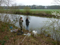 Unterstützt wurde ich von Willi, Roman und meinen Hund Diego. Wir unterhielten uns zwischenzeitlich über unsere Jugend. Was ist denn mit den Jungs los? Drei Kescher vergessen, zwei Eimer fehlten, drei ohne Maden, einer ohne Angel und über kleine Haken sprechen wir erst gar nicht. Stippfutter? Wofür? Waren wir früher auch so vergesslich? Oder hatten wir womöglich einfach mehr Bock zu angeln? Wahrscheinlich waren das einfach nur Anfangsschwierigkeiten. Ist ja auch das erste Vereinsangeln im Jahr.