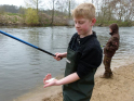 In diesem Jahr fand das Anangeln der Jugend in der Ems am Vohrener Stau statt. Da der Wasserstand oberhalb recht flach war, entschieden wir uns unterhalb zu fischen. Um acht Uhr durften wir zehn Jungangler begrüßen. Nachdem die Spielregeln geklärt waren, ging es für die Jungs direkt ans Wasser. Wer fertig war mit Aufbauen, durfte mit dem Angeln beginnen.