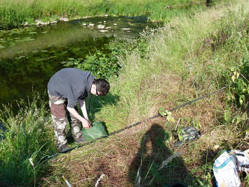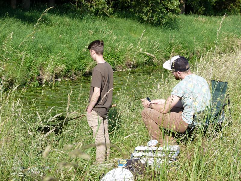 Für das Königsangeln der Jugend hatten wir uns in diesem Jahr den Axtbach ausgesucht. Genauer gesagt die Strecke zwischen Beelen und Warendorf vor der Eisenbahnbrücke. Es war gar nicht mal so einfach die Plätze abzustecken. Neben dem hohen Gras waren es vor allem die vielen Seerosen, die uns die Wahl der Stellen erschwerte. Grundsätzlich versuchen wir natürlich immer Bereiche zu wählen, wo man gut angeln kann und möglichst viele Fische fängt. Hier am Axtbach musste zusätzlich auch die Möglichkeit bestehen, die Fische zwischen dem ganzen Grün zu landen. Und damit blieben nicht mehr viele Stellen übrig. Wir waren ausnahmsweise mal froh, dass sich nur zehn Jungangler für den Titel König 2023 aufstellen ließen. Die ersten Fische konnten dann relativ schnell gefangen werden und somit war klar, dass es einen König geben wird. Die Frage war nur: Wer wird das Rennen machen? Es wurden vor allem kleinere Fische gefangen. Rotaugen, Ukeleien, Gründlinge, Döbel und ein Barsch. Wo sich die größeren Fische versteckt hielten, hätten wir auch gerne gewusst. Wahrscheinlich in den Seerosen. Zumindest konnten wir da zwei Karpfen beobachten, die aber scheinbar mit dem Laichen beschäftigt waren.