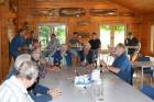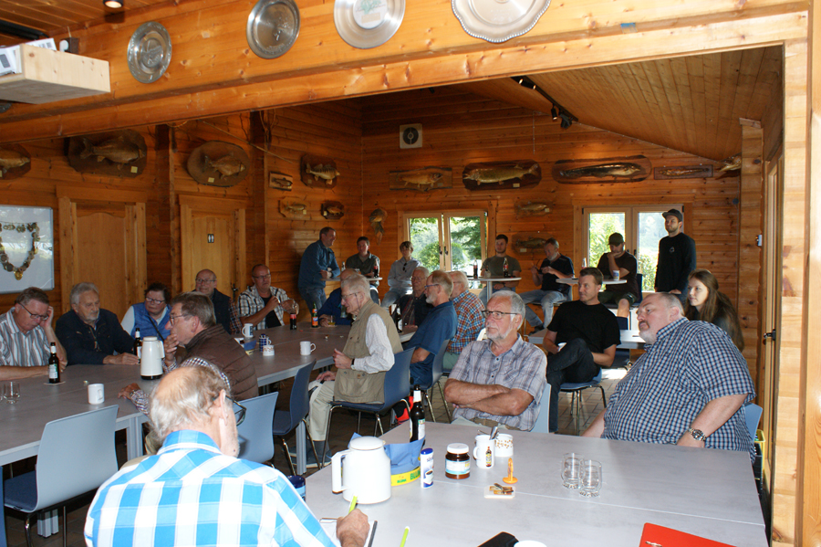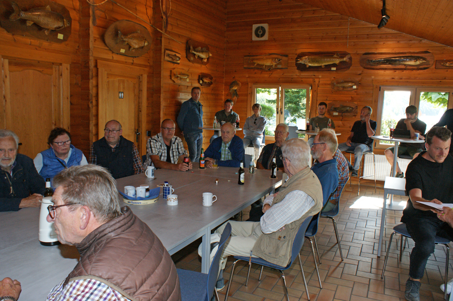 28 Teilnehmer erfuhren einiges über die bisher geleisteten Arbeitsstunden der Mitglieder und des Vorstandes. 135 Mitglieder leisteten bisher 791 Stunden für die Pflege der Gewässer und dem repräsentativen Eindruck von unserem Vereinsgelände. An 10 Sonderdiensten nahmen 33 Mitglieder teil. Dazu zählt der allgemeine Fischbesatz, Baum Fällaktionen, Besatz von Quappen-Brut und vorgestreckten Quappen, sowie Besatz von Farmaalen, um nur einige Sonderdienste zu nennen. In diesem Jahr wächst das Gras bei dem feucht-warmen Wetter besonders gut und die Gewässerwarte sind dankbar um jede Unterstützung der Mitglieder.