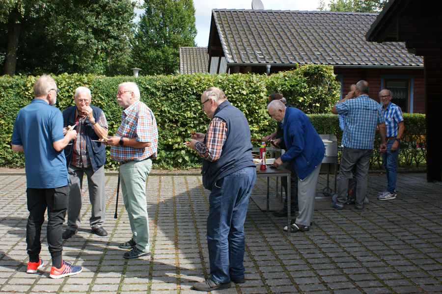 Zum Abschluss sorgten Dirk, Theo und Heiner für das leibliche Wohl. Der Grillduft lockte alle nach draußen. Mit gekühlten Getränken versorgt, wurde über die vorgebrachten Themen diskutiert.