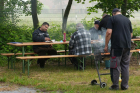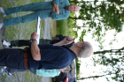 Während sich der Nebel allmählich verzog und Dirk bereits leidenschaftlich den Kohlegrill anfeuerte, umrundete Heiner den See mit dem Wiegenetz.