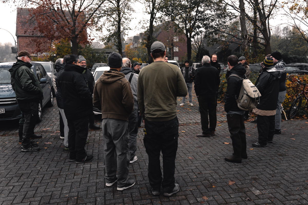 Dass das Raubfischangeln für viele Vereinsmitglieder den jährlichen anglerischen Höhepunkt darstellt, schlug sich einmal mehr in der guten Beteiligung von 26 Vereinsmitgliedern nieder, die sich um 07:30 Uhr unter grauem Himmel auf dem Freibadparkplatz versammelten. Kalt und diesig war es an diesem Morgen und ein ungemütlicher Wind, der so manchen Optimisten in seinem Pullover frösteln ließ, wehte von Westen her. Dennoch lagen Erwartungen und Vorfreude über der kleinen Menschentraube. Angeregte Gespräche und Diskussionen wurden schließlich durch die offizielle Begrüßung des Sportwartes Heiner Alck und Entsendung an die Gewässer abgelöst.