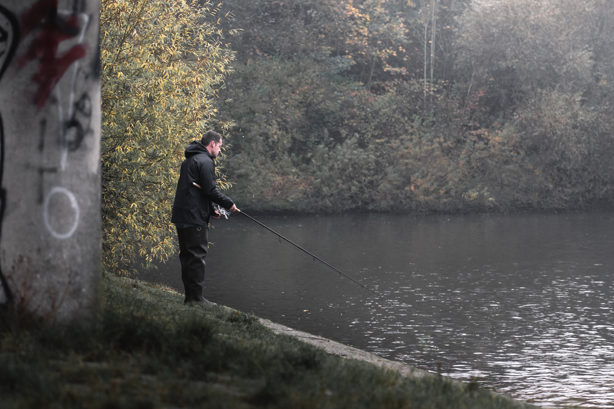 Die an den Parkplatz angrenzende Ems lockte eine Handvoll Angler fußläufig an ihre Ufer. Die überwiegende Mehrzahl sprang motiviert in die Autos, brauste mit Sitz- und Lenkradheizung vom Parkplatz und verteilte sich in alle Himmelsrichtungen.