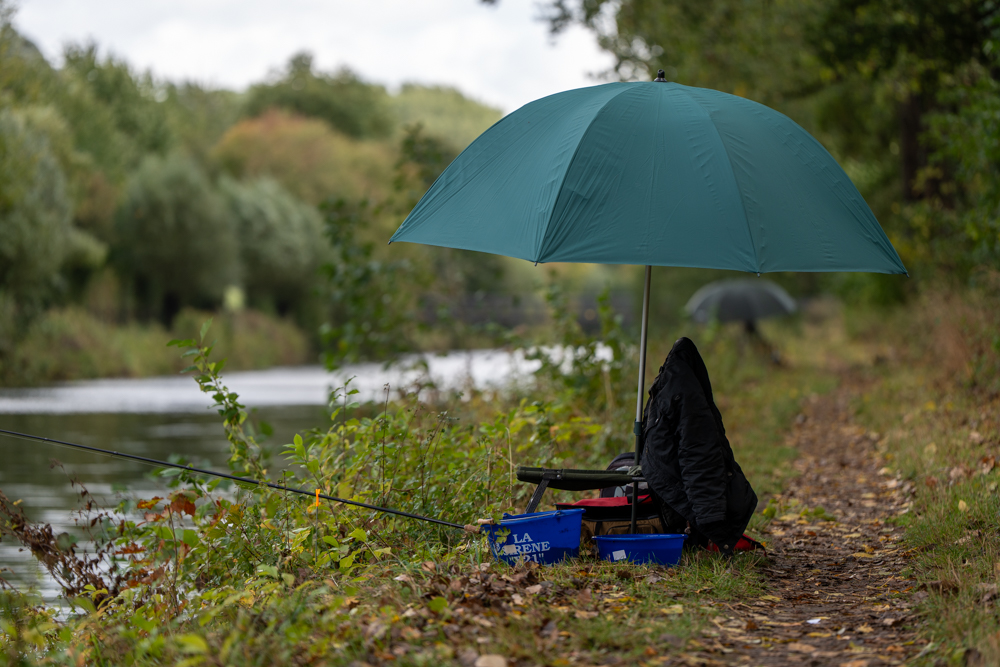 Das Wetter zeigte sich an diesem Samstag von seiner wechselhaften Seite. Bis kurz vor dem Treffen regnete es zeitweise kräftig, ehe sich pünktlich zum Aufbau die Wolken lichteten und am Nachmittag sogar kurzzeitig die Sonne hervorkam. Der Wind blieb beständig und machte es den Anglern nicht leicht, ihre feinen Posen ruhig auf der Wasseroberfläche zu halten.