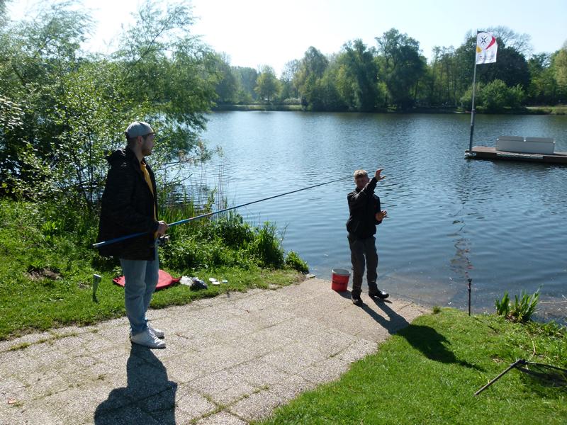 So langsam tauchten die ersten Teilnehmer auf. Mein Versuch gespendetes Angelmaterial loszuwerden, endete mit der Frage, ob man die Sachen vom letzten Mal wieder zurückgeben könnte. Tatsächlich bin ich dann aber doch noch einen Angelkoffer losgeworden. Um kurz nach acht ging es für acht Jungangler an die Angelstellen. Nachdem einige Montagen von Willi und Jens überarbeitet wurden, sollten eigentlich so langsam die ersten Fische beißen. Eigentlich schien an diesem Tag aber nicht zu funktionieren. Egal, was probiert wurde, die Posen wollten einfach nicht untergehen. Johann versuchte sogar mit einem gezupften Wurm einen Barsch zu überreden. Barsche sind bei uns in der Jugendgruppe nämlich auch in der Wertung. Für einen Moment der Spannung sorgte dann allerdings ein anderer Fisch, denn ein Hecht um die 70 cm packte sich den Wurm. Doch der Drill war schnell vorbei. Mit einem Schwall verabschiedete sich der Räuber wieder in die Tiefe. So konnte bis zum Schluss leider kein einziger Fisch gefangen werden. Für uns bleibt nur die Hoffnung, dass die Jugend wenigstens die Natur und das schöne Wetter genießen konnte. Und beim nächsten Mal beißt bestimmt was!