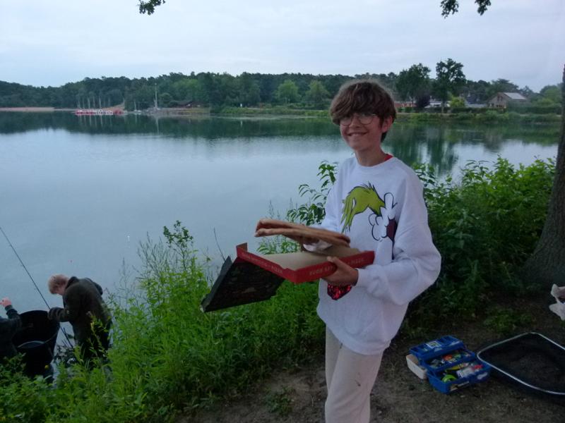 Abends gab es eine Stärkung vom Lieferdienst. Und an der frischen Luft schmeckte es nochmal so gut. Die Nacht verlief nicht gerade ruhig. Was verständlich ist, denn für manche war es das erste Nachtangeln überhaupt. Umso schöner, wenn man sieht, wie aufregend alles für die Jungs ist. Da wird man direkt an die eigene Jugend erinnert. Das erste Nachtangeln. Da ist an Schlaf kaum zu denken. Aber so schlimm war es dann wohl doch nicht. Das Ordnungsamt musste nicht eingreifen.