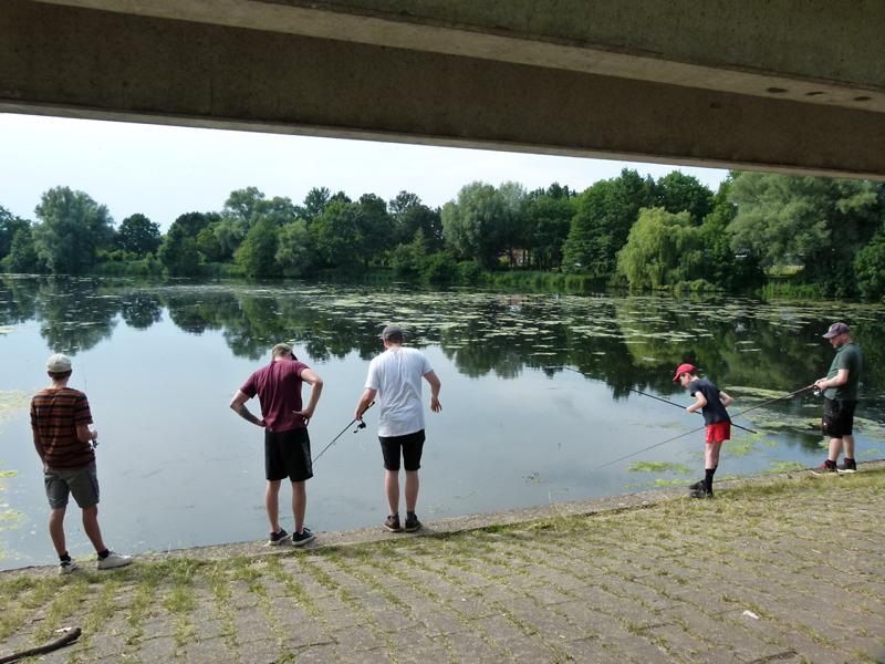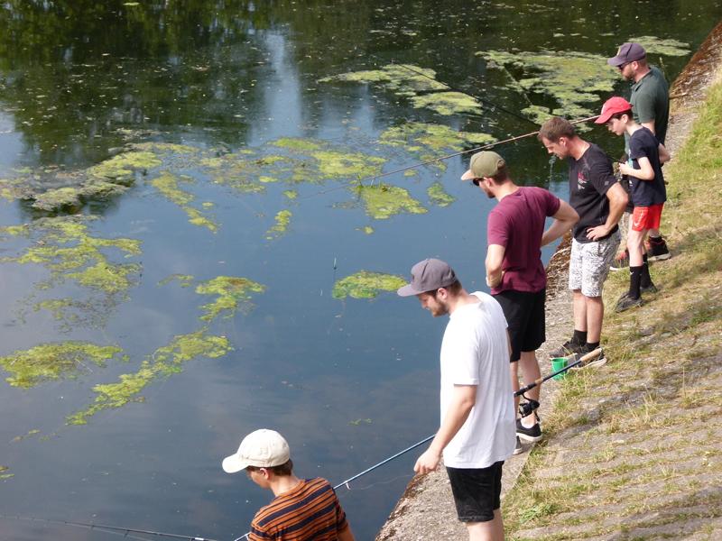 Da viele Stellen, die wir sonst beim Schnupperangeln nutzen, mittlerweile komplett vom Kraut eingenommen sind haben wir uns kurzerhand entschieden, an die Staumauer zu gehen. Wir waren uns einig, wenn irgendwo bei dieser Hitze Fische sind, dann in der Strömung. Also gab es vor dem Fischen einen kleinen Spaziergang. Obwohl die Fische nicht wirklich in Beißlaune waren, konnten doch einige gefangen werden. Selbst die Betreuer haben mitgeangelt und waren erfolgreich. Aber mit Abstand, die meisten, nämlich 13 Fische, gab es für den Jüngsten unter uns. Darunter Gründlinge, Barsche und Ukeleien. Wie schnell doch die Zeit vergeht, wenn ab und zu etwas beißt. Als kleine Abkühlung gab es sogar noch ein Eis für alle. An dieser Stelle nochmal vielen Dank an Karl!