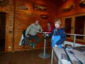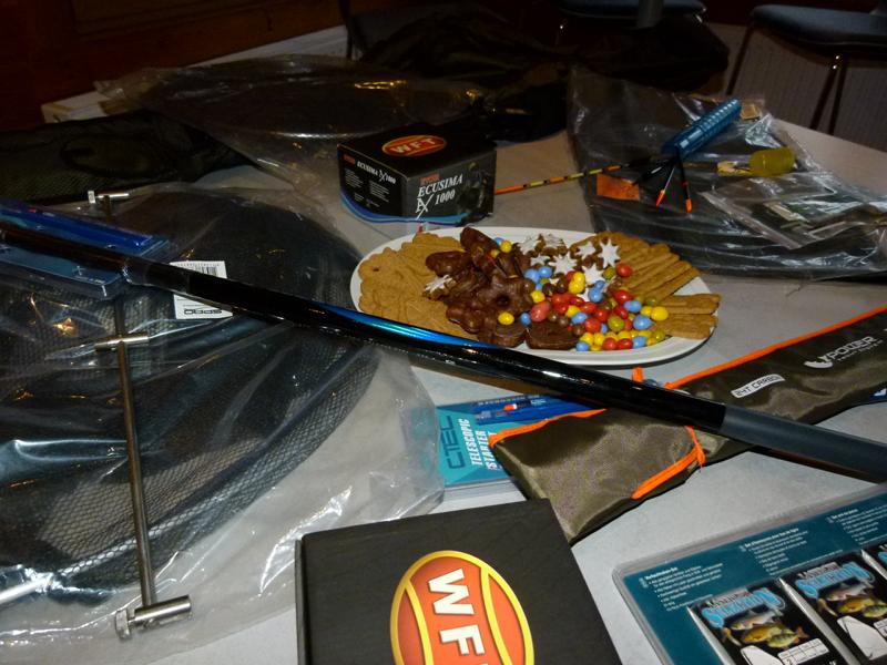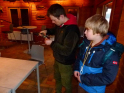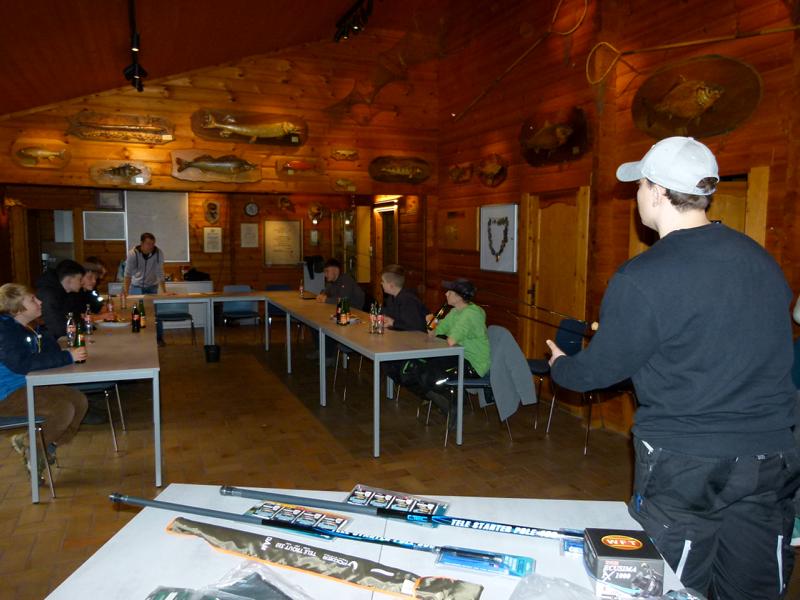 Für die letzte Stunde ging es dann ins Vereinsheim. Immerhin hatten wir auch etwas von Weihnachtsfeier in der Einladung geschrieben. Nachdem unsere Siegerehrung durch eine Fehleranalyse ersetzt wurde, gab es eine weitere Möglichkeit drei Gutscheine zu gewinnen. Wir veranstalteten ein Casting im Vereinsheim. Eigentlich waren es zwei Eimer in unterschiedlicher Größe, die getroffen werden sollten, aber der eine oder andere Wurf ging gefährlich nah an ein Hechtpräparat. Reiner Zufall, passte aber irgendwie zu unserem kleinen Raubfischangeln. Nach drei Durchgängen mit je drei Würfen und einer Menge Spaß, standen drei Gewinner fest. Laurin gewann vor Theo und Johann. Zum Abschluss durfte sich jeder Teilnehmer etwas von unserem Gabentisch aussuchen. Natürlich gab es jede Menge Angelsachen vom Weihnachtsmann. Wer brav war, also am häufigsten an unseren Veranstaltungen teilgenommen hatte, durfte zuerst an die Geschenke. Bei gleicher Teilnahme gab es ein Stechen, welches durch ein weiteres Zielwerfen entschieden wurde.