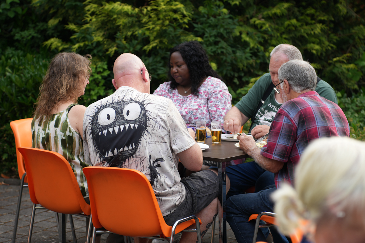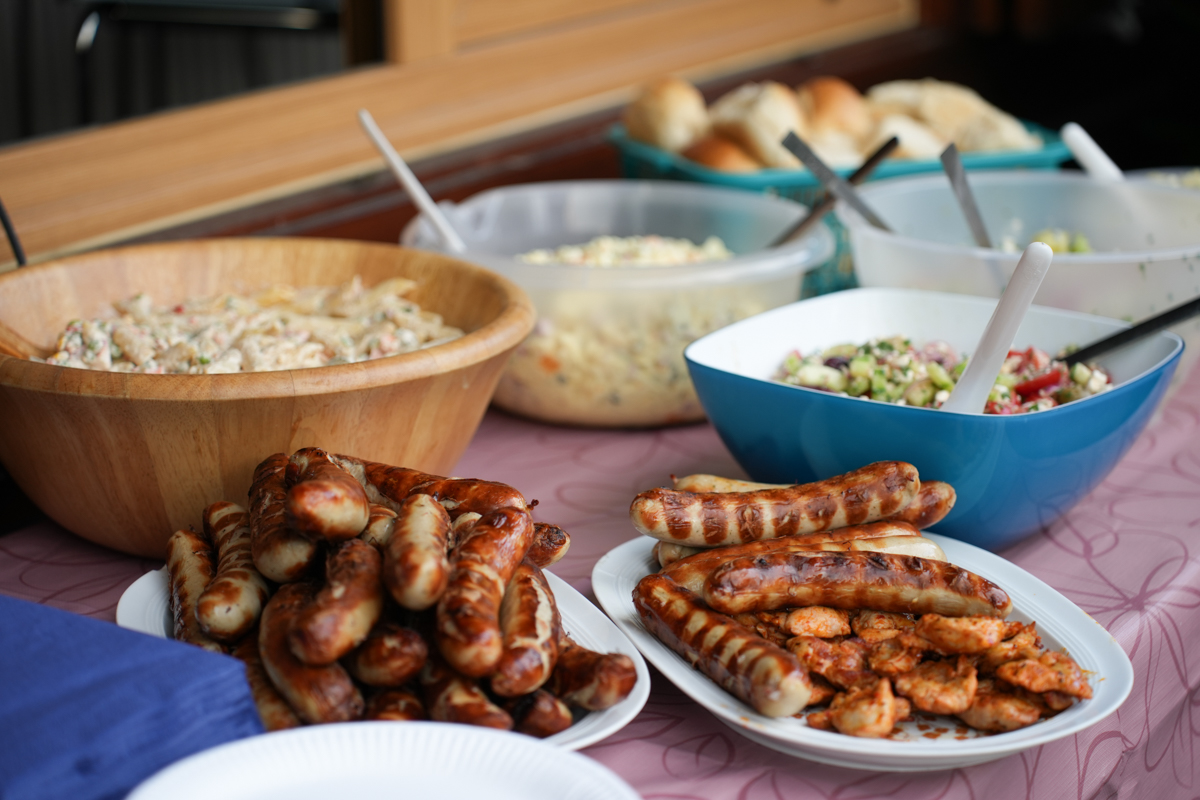 Die Gewässerwarte Theo und Dirk hatten sich des Grills angenommen und legten mit ruhiger Hand und gutem Timing Fleisch und Würstchen auf. Als dann der Duft von Gegrilltem über das Gelände zog, standen bereits die ersten Hungrigen in Lauerstellung. Zu dem Grillgut gesellten sich eine Vielzahl liebevoll zubereiteter Salate und ofenfrische Brötchen. Alles war nicht nur äußerst schmackhaft, sondern auch appetitlich angerichtet – so sehr, dass selbst Spaziergänger auf dem Weg rund um den See immer wieder mit neugierigen Blicken stehenblieben.