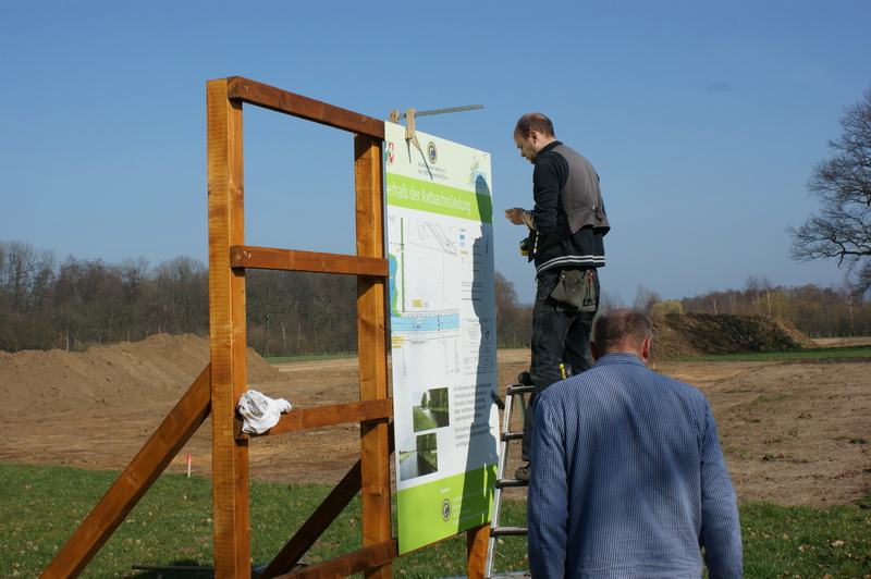 Das Baustellenschild wurde aufgestellt und damit sind viele Informationen für die Spaziergänger verfügbar.