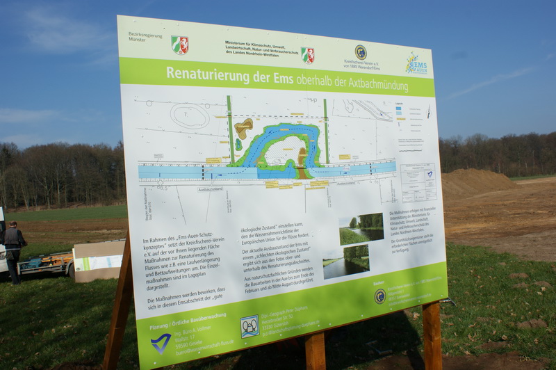 Der Kreisfischerei-Verein Warendorf/Ems führt in eigener Verantwortung die Renaturierung der Ems oberhalb der Axtbachmündung durch. Mit eigenen finanziellen Mitteln und großem ehrenamtlichen Einsatz renaturiert der Verein in Zusammenarbeit mit der Bezirksregierung Münster einen Abschnitt der Ems.