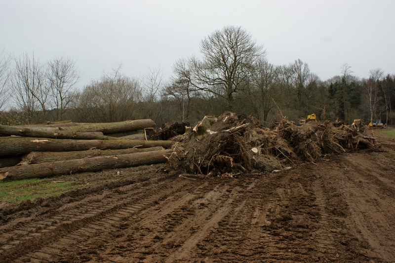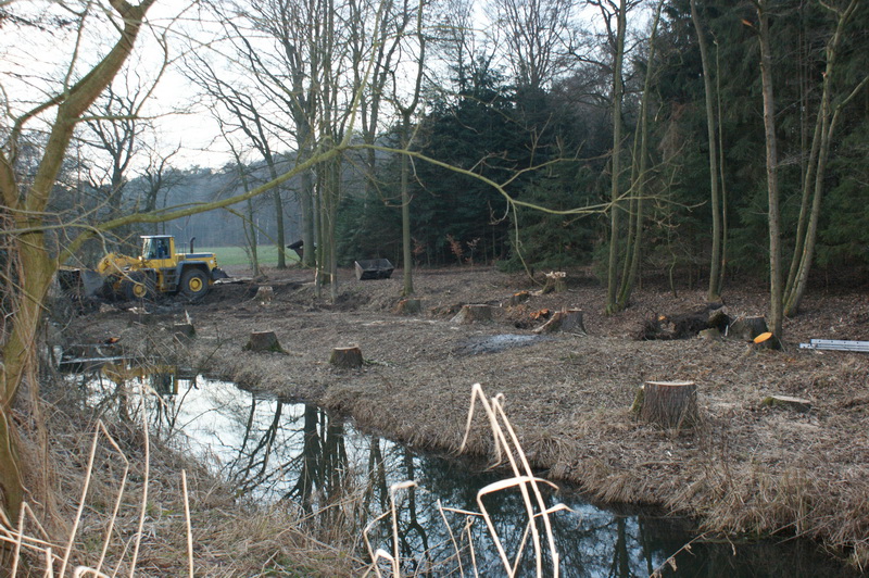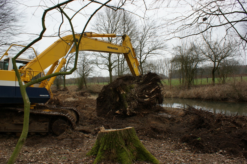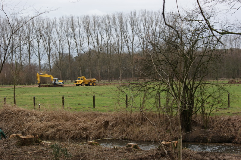 Anfang Januar begannen die Vorbereitungen. Das Zwischenlager für den Bodenaushub, die Transportwege und die Überfahrt über den Nördlichen Talgraben mussten vorbereitet werden. Viele Pappeln, die meisten waren morsch, wurden gefällt um sie später in den neuen Verlauf der Ems als Totholz einzubauen.