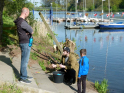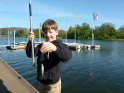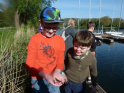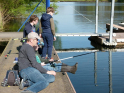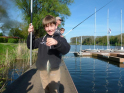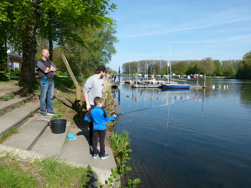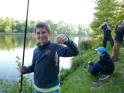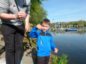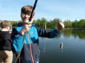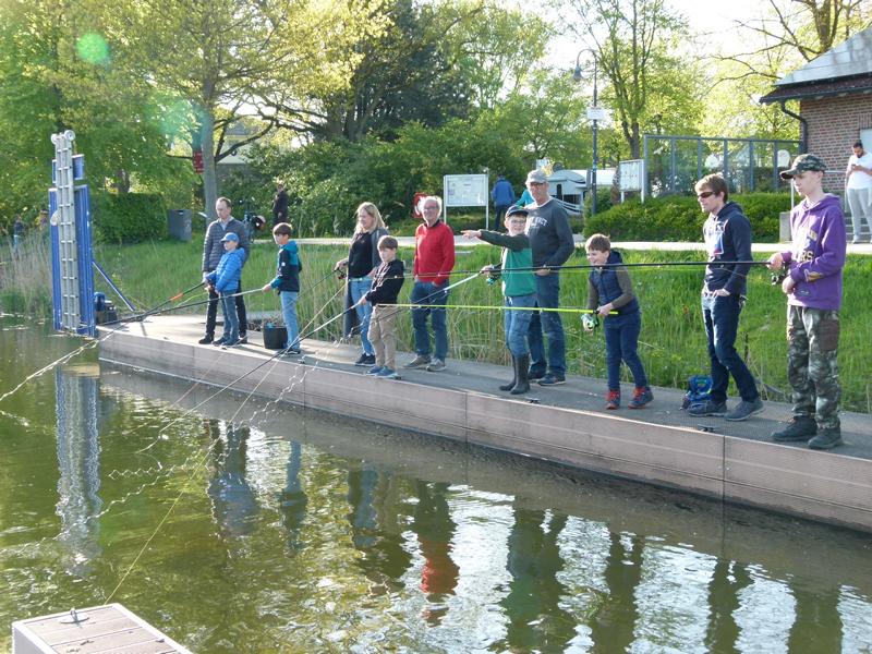 Der Treffpunkt war, wie immer, am Emssee vor dem Parkplatz am Bootshaus. Um 17 Uhr durften wir dreizehn Jugendliche bei herrlichem Wetter begrüßen. Da ein paar neue Gesichter dabei waren, erklärte ich den Ablauf, bevor es an die Angelstellen ging. Die meisten gehen immer direkt auf den langen Steg vor dem Bootshaus. Hier kann man bequem stehen oder sitzen, bekommt keine dreckigen Füße und die Fische halten sich anscheinend gerne zwischen den Stegen im Wasser auf. Wer hier allerdings abrutscht, wird wohl nicht nur nasse Füße bekommen. Die ersten Fische kamen allerdings von einer Uferstelle. Es handelte sich um kleine Rotaugen. Später kamen noch kleine Barsche und Ukeleien dazu. Die Fische waren anscheinend in Beißlaune. So konnte jeder seine Fische fangen. Endlich mal wieder! Und wir haben die Hoffnung, dass wir beim nächsten Mal noch ein paar mehr und dann vielleicht auch etwas größere Fische fangen werden. Wer seine Augen offen hatte, konnte eine Schildkröte beobachten und vereinzelt Karpfen beim Ziehen unter der Oberfläche sehen. Ganz zu schweigen, von den jungen Entenküken. Wirklich niedlich! Am Wasser gibt es halt immer etwas Spannendes zu sehen. Nach guten zwei Stunden war das zweite Schnupperangeln vorbei und es kehrte wieder Ruhe am See ein. Wir freuen uns auf das dritte Schnupperangeln am siebten Juni.