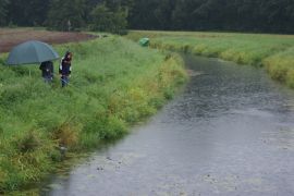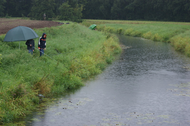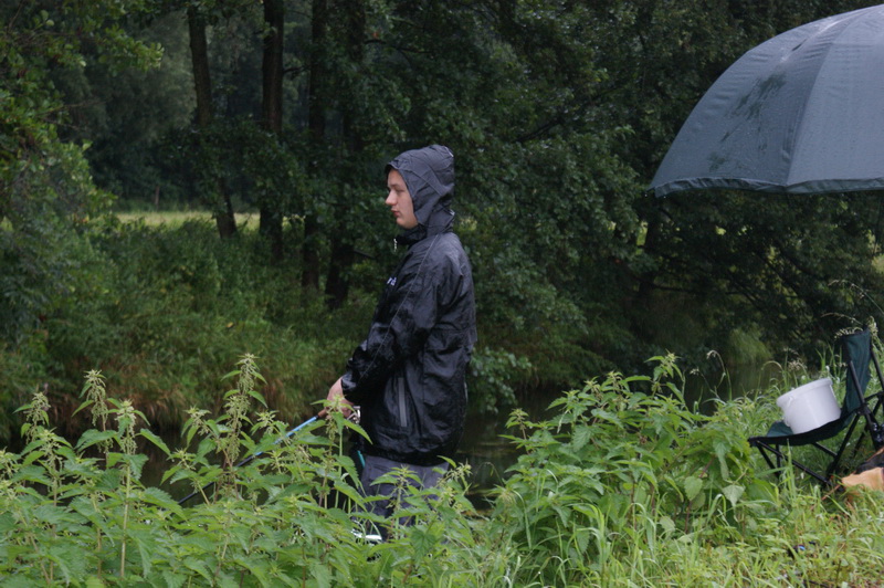 Das Pokalfischen der Jugendgruppe wurde am 14. August am Axtbach durchgeführt. Wie allgemein bekannt ist dieses Gewässer nicht ganz einfach zu befischen, da die Fische hier besonders vorsichtig sind. Wenn dann pünktlich zum Beginn des Fischens, am Sonntagmorgen um 7.00 Uhr, der Regen einsetzt und sich zum Dauerregen ausweitet, ist es sicherlich ein Fischen unter erschwerten Bedingungen. Unsere Jungangler haben sich nicht abschrecken lassen und alle tapfer durchgehalten. Zum Teil auch ohne Angelschirm. Dafür wurden sie mit guten Fängen belohnt. Den ersten Platz und damit Gewinner des Wanderpokals sicherte sich Cedric Guntenhöner. Auf den weiteren Plätzen folgten Phillip Vogelsang und Stefan Freese.
