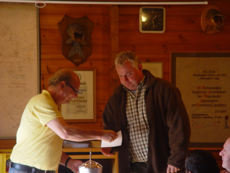 Mit einem Hecht aus der Ems wurde Stefan Günnewig diesjähriger Sieger, gefolgt von Andreas Körner und Thomas Schwee. Auch einen ewigen Platz auf dem Wanderpokal für den schwersten Fisch wird Stefan Günnewig einnehmen. Die Platzziffer 11 brachte Andreas Kersting Glück, denn sein Los wurde für den Sonderpreis gezogen.