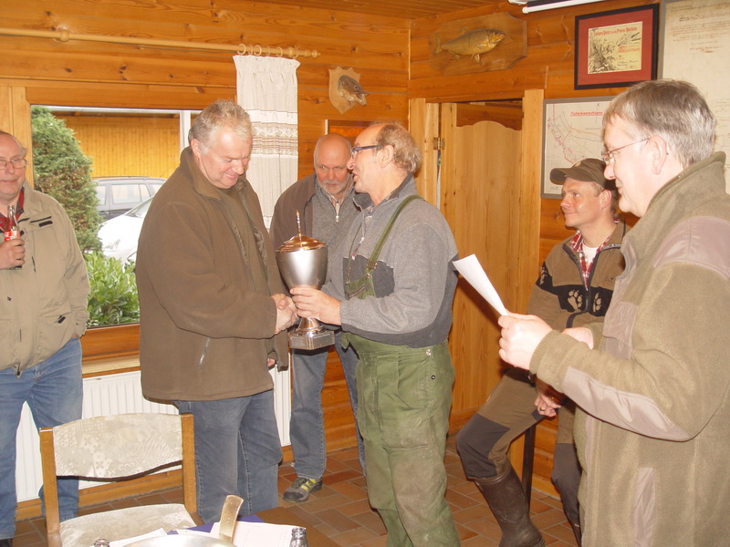 Das auch kleine Gewässer große Fische beherbergen, zeigte sich durch den Siegerfisch von Thomas Schwee aus dem Axtbach. Thomas fing einen Hecht, der die Metermarke nur knapp verfehlte. Mit 95 cm und einem Gewicht von 7.220 Gramm kann man schon von einem "Traumfisch" sprechen. Auf den Plätzen folgten Dieter Dresmann und Edi Vigel. Insgesamt waren 14 Mitglieder an diesem wunderschönen Herbsttag an ihrem Lieblingsgewässer erfolgreich. Das Thomas Schwee auch den Wanderpokal für den schwersten Raubfisch entgegen nehmen konnte stand außer Frage.