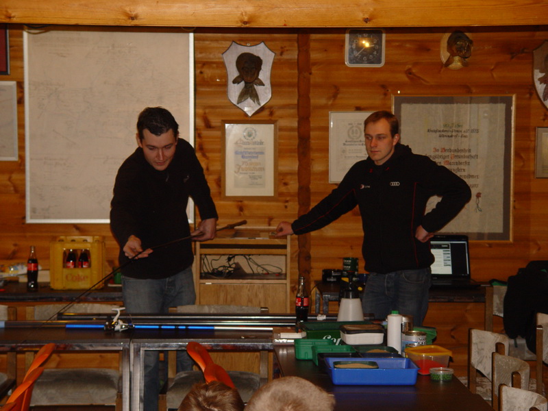 Neun Jugendliche konnte Jugendwart Michael Fölling am 25.02.12 im Vereinsheim des Kreisfischerei-Vereins Warendorf/Ems begrüßen. Zur Schulung über das Match- und Stippfischen wurde Kevin Kerßenfischer von der ASG Dyckerhoff eingeladen. Zunächst wurde den Jugendlichen das Material für diese feine Art des Angelns vorgestellt. Matchrute, Bolorute sowie die unberingte 13 Meter Stippe stellte Kevin den Jugendlichen vor und erklärte ausführlich, in welchem Gewässer die einzelnen Ruten zum Einsatz kommen. Danach demonstrierte Kevin Posenmontagen an einer Matchrute und gab den Junganglern hierzu wichtige Tipps, damit diese Montagen in der Praxis auch funktionieren und nicht in einem Schnursalat enden. Zudem wurden die Fragen über das Anbringen der Bleie auf der Schnur, der richtige Knoten am Wirbel sowie der richtige Haken für die entsprechenden Zielfische erklärt. Auch das wichtige Loten am Gewässer wurde ausführlich dargestellt. Abschließend durften die Jugendlichen einen Abstecher in den Bereich des richtigen Anfutters machen. Die verschiedenen Futtersorten, exotische Dips und natürlich die vielfältigen Köder wurden von Kevin vorgestellt. Am Ende einer zweistündigen Schulung hatte der ein oder andere Jugendliche sicherlich Lust sofort ans Wasser zu gehen um das neue Wissen über die Match- und Stippangelei in die Praxis umzusetzen.
