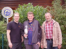 Der Siegerpokal des Pokalfischens der Jugendgruppe wird an Jan Beelenherm übergeben.