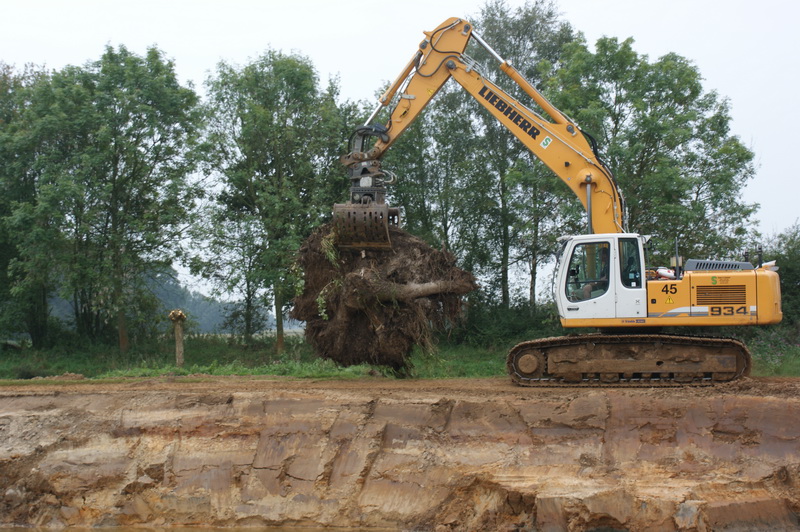 Einzelbäume aus dem Maßnahmengebiet mit Stammdurchmessern von bis zu ca. 1,0 m werden mit Baggern umgedrückt, die Wurzelstöcke freigelegt, der gesamte Baum mit Ästen bis zur Einbaustelle transportiert und im Bereich des neuen Emsverlaufes abgelagert. Jeder Baum wird zur Strömungslenkung mit einem Bagger ausgerichtet.