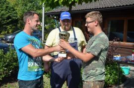 Überpünktlich trafen die Jungs aus Einen an unserem Vereinsheim in Sassenberg ein. Es sollte im Feldmarksee geangelt werden. Fünf Jugendliche, begleitet von drei Betreuern, waren unsere Gäste. Da wir (Willi, Jens, Alex und ich) drei Jungangler mehr im Team hatten, entschied das Los, wer von uns für dieses Angeln nach Einen "überlaufen" sollte. So war es halbwegs ausgeglichen, obwohl wir immer noch mit einer Person im Plus waren. Das Angeln selber lief eher schleppend an. Nur zwei Jungs aus Einen fingen von Anfang an. Bei allen anderen ließen sich die Fische etwas mehr Zeit. Auch wenn es an diesem Tag leider keine großen Fische zu fangen gab, konnte doch wenigstens jeder etwas fangen. In der Summe mußte sich Warendorf dann nach fast vier Stunden geschlagen geben. Die Gruppe aus Einen hat trotz einer Person weniger fast doppelt so viel gefangen. Ein eindeutiges Ergebnis. So blieb der von Einen gespendete Wanderpokal auch gleich bei unseren Gästen. Ebenfalls gingen die Pokale für die erfolgreichsten Jungangler verdient nach Einen. Wir namen es sportlich und freuen uns schon auf die Revanche im nächsten Jahr.