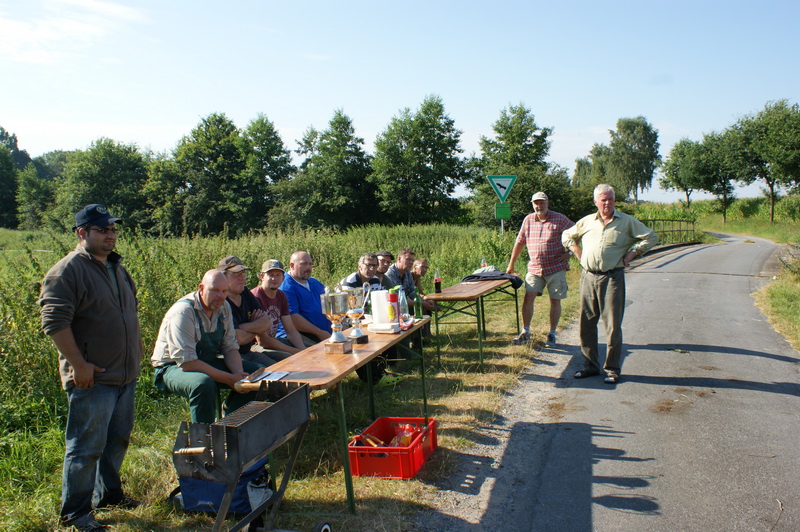 Dass es im Axtbach große Fische gibt, ist bei den Insidern schon lange kein Geheimnis mehr. Umso mehr konnten sich zwei Vereinsmitglieder beim jüngsten Hegefischen am Axtbach über Aale von fast drei Pfund freuen. „Flussschlangen“ von der Größe sind jedoch in der Tat eher die Seltenheit geworden. Aber der Reihe nach. Insgesamt 18 Petrijünger trafen sich am Samstagabend, um das diesjährige Nacht- und Aalangeln am Axtbach zu bestreiten. Gefischt wurde von 20.10 Uhr bis zum nächsten Morgen um 07.10 Uhr Höhe Klärwerk bis zur Fleischerbrücke. Durch die lange Trockenheit betrug der Wasserstand an einigen Stellen unter einem halben Meter, was den Fischfang nicht gerade einfacher machte. Zudem war die Nacht für diese Jahreszeit unangenehm kühl und feucht. Dafür wurde es am nächsten Morgen umso schneller warm und auch innerlich sorgte die von Horst Junker zubereitete Bratwurst für ein sättigendes Gefühl. Anschließend hatte Andreas Körner gleich dreifach Grund zum Jubeln. Nicht nur, dass er an dem Abend den größten Aal und somit den größten Fisch überhaupt gefangen hatte, er konnte auch die Friedfischwertung für sich entscheiden und darf sich somit gleich in zwei Wanderpokalen verewigen. Gegen zehn Uhr beendete Klaus-Peter Kranke das diesjährige Hegefischen am Axtbach und wünschte allen Teilnehmern noch einen erholsamen Sonntag.