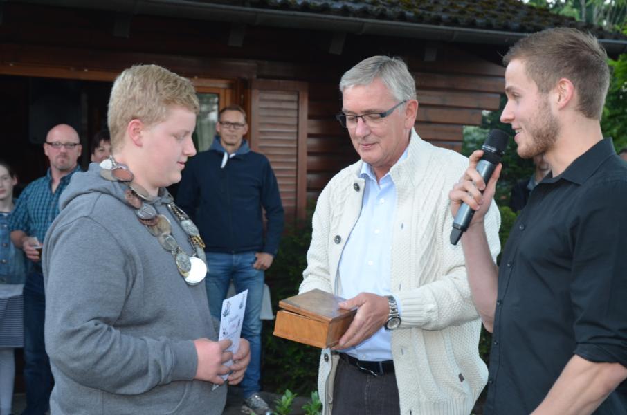 Zu 20.00 Uhr hatte der Vorstand alle Mitglieder und deren Angehörigen zur Königsfeier im Vereinsheim in Sassenberg eingeladen. Rund 60 Gäste konnte unser 1. Vorsitzende Klaus-Peter Kranke an diesem Abend begrüßen. Unsere Grillmeister Horst und Martin hatten den Grill bereits angefeuert und leckeres Fleisch und Würstchen für die hungrigen Gäste zubereitet. Zwischenzeitlich hatte unser Sportwart Heiner Alck die Aufgabe, den neuen König zu ermitteln. Zunächst wurde der Jugendkönig geehrt. Bereits am 24. Juni hatten die Jungangler ihr eigenes Königsangeln. Die Inthronisierung der neuen Könige wird seit zwei Jahren zusammen mit den Senioren durchgeführt. Der neue Jugendkönig 2017 heißt Finn Beelenherm. Anschließend wurde auch das Geheimnis um den neuen Seniorenkönig gelüftet. Zum wiederholten Male hat es unser Sportwart Heiner Alck geschafft, die Königswürde zu ergattern. Aber welche Bezeichnung sollte der neue (alte) König erhalten. Nachdem Kaiser, Sultan und Nutella-König bereits vergeben waren, einigte man sich mehrheitlich auf Pabst. Nach der Krönung wurden die Könige ausgelassen gefeiert. Zwar feiern die Petrijünger ihren neuen König nicht so lange wie die Schützenbrüder, aber mindestens genauso ausgiebig.